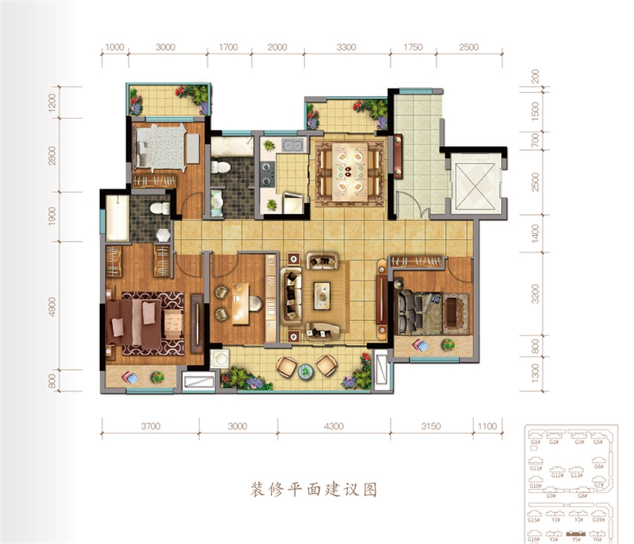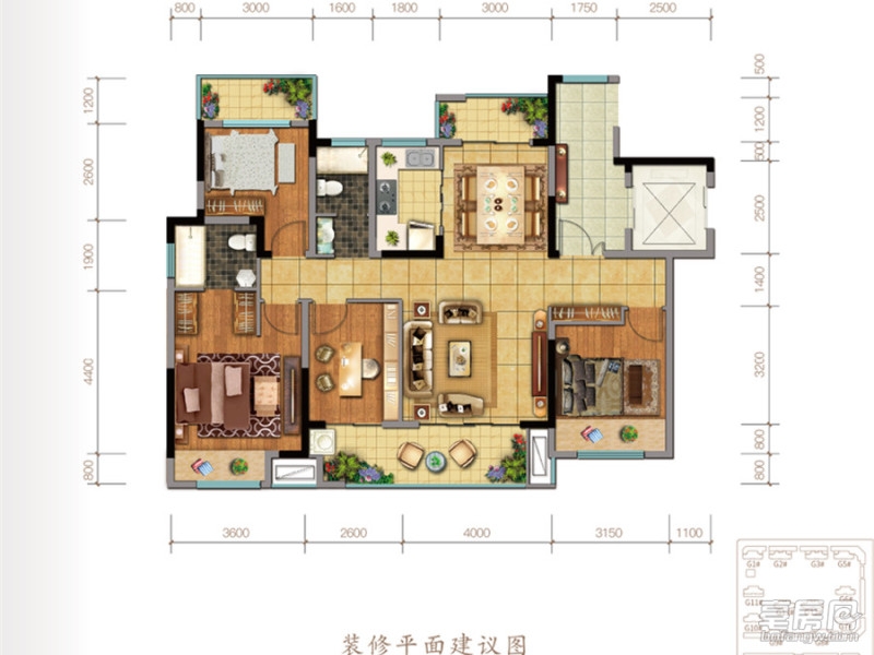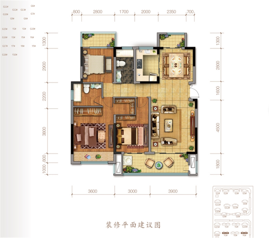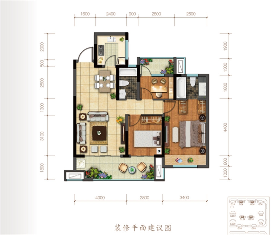 熙园洋房G户型-3室2厅2卫(113平米)