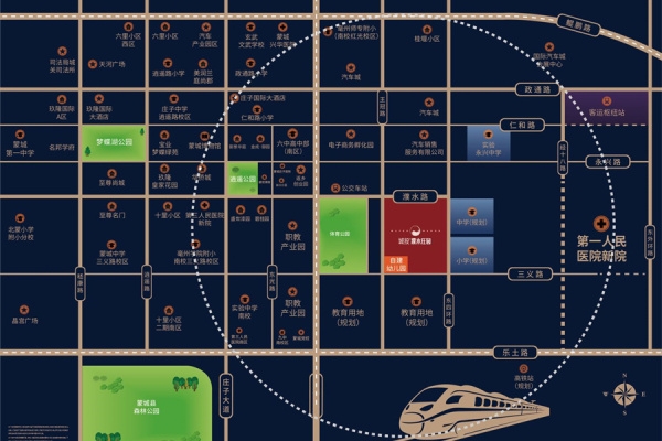 项目周边鲲鹏路政通路永新兴路横跨东西,嵇康路庄子大道尉迟大道纵贯南北,宁洛高速出入口距离项目9公里,3.8公里即可到达正在建设的蒙城高铁站。北侧2公里是蒙城县政府出资建设的综合客运枢纽站。多种出行方式任你选择。