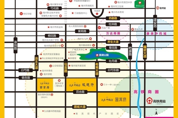 远大·中国府作为远大集团在亳州的首个项目,是一个新中式建筑风格的高端改善型智慧住区,项目总共分为:国宾府、紫京府、玖珑府,总占地511.76亩,总建筑面积超90万㎡,位于亳州市南部新区核心位置,亳州学院南、风华中学南校区旁。项目共分为3个地块,其中77号地为国宾府占地183.12亩,总建面32.8万㎡;风华中学西侧是项目78号地块,占地96.77亩,总建面约16.9万㎡;国宾府西北侧、风华中学东侧是项目的79地玖珑府,占地231.86亩,总建面约44万㎡。项目周边配套丰富,风华中学南校区在侧,风华小学、亳州学院实验小学、北大园丁学校、亳州一中(南校)、31中(规划中)等环伺项目周边。而且项目北邻素有亳州“城市客厅”之称的南湖市政公园,坐拥顺泰广场、亳州市体育馆、亳州歌剧院(规划)、城市展览馆、广电艺术中心、1290亩南湖市政公园等一系列豪华市政配套,在这里,可以满足您对家庭生活的所有需求。