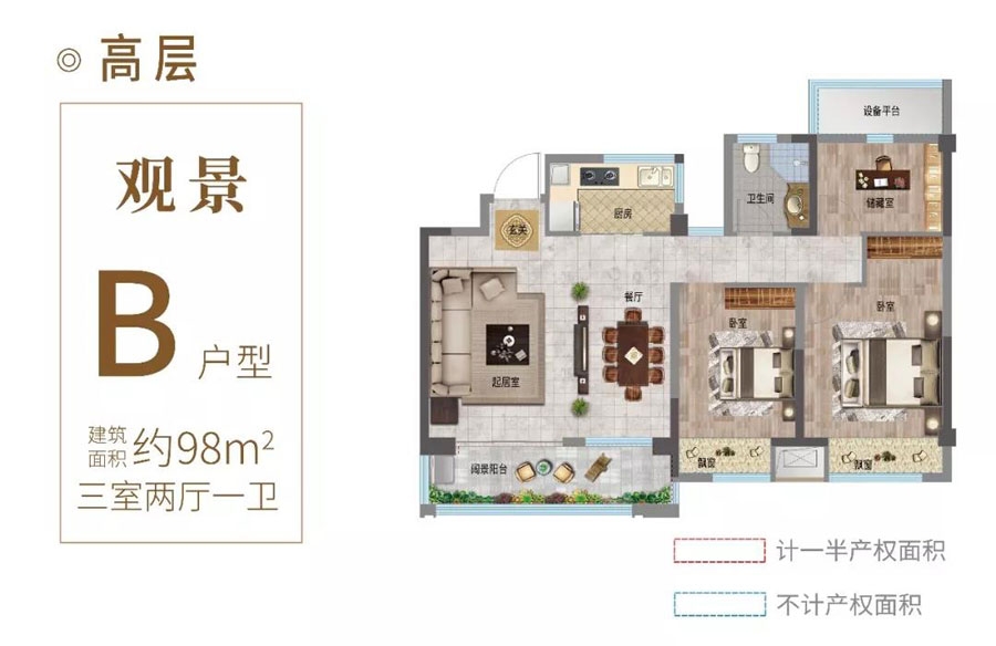 整个建筑布局,北高南低,错落有致,板式楼的设计配合近50米超大的楼间距最大程度上保障每户业主的采光和观景需求。高低搭配的建筑规划,增加项目识别度的同时在天空中划出独美的天际线。