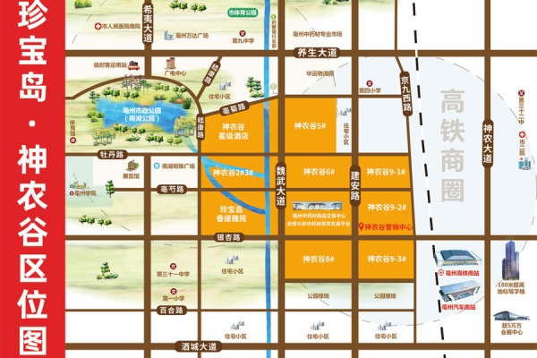 神农谷中药电商物流城,是由珍宝岛投资开发的大型中药电商物流平台,项目总占地面积约1530亩,总建筑面积约123万㎡,总投资约80亿元人民币,涵盖总部基地、中药材商品交易中心、中药材商贸物流园、中药材精品街区、星级酒店等。