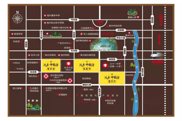 远大·中国府作为远大集团在亳州的首个项目,是一个新中式建筑风格的高端改善型智慧住区,项目总共分为:国宾府、紫京府、玖珑府,总占地511.76亩,总建筑面积超90万㎡,位于亳州市南部新区核心位置,亳州学院南、风华中学南校区旁。项目共分为3个地块,其中77号地为国宾府占地183.12亩,总建面32.8万㎡;风华中学西侧是项目78号地块,占地96.77亩,总建面约16.9万㎡;国宾府西北侧、风华中学东侧是项目的79地玖珑府,占地231.86亩,总建面约44万㎡。项目周边配套丰富,风华中学南校区在侧,风华小学、亳州学院实验小学、北大园丁学校、亳州一中(南校)、31中(规划中)等环伺项目周边。而且项目北邻素有亳州“城市客厅”之称的南湖市政公园,坐拥顺泰广场、亳州市体育馆、亳州歌剧院(规划)、城市展览馆、广电艺术中心、1290亩南湖市政公园等一系列豪华市政配套,在这里,可以满足您对家庭生活的所有需求。