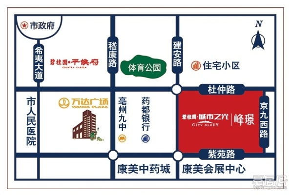 碧桂园·城市之光择址紫苑路北、杜仲路南、建安路东。建安路作为城市主轴,现今已成为主城繁华向南的纽带。深耕不辍,碧桂园将不负重任,与城市同发展,与城市共超越!碧桂园·城市之光,是带给城市的一道光。她代表着新兴的力量;她致力于打造亳州市场标杆之作;她必将对城市产生深远影响,让城市看到新的光芒。